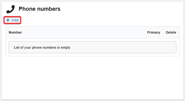 - On the "Basic info" tab, in the "Phone numbers" block, click "Add":