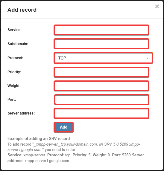 SRV are records that define settings for connecting to various services (server address and port, additional settings).