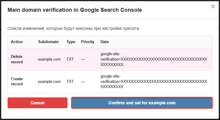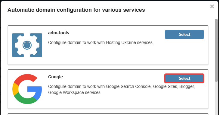 Domain settings presets are ready-made sets of DNS records that simplify the process of confirming or pointing a domain to work with various services. They allow you to add, change, and delete domain DNS records in accordance with the requirements of the selected service in just a few clicks and with the minimum necessary data, and in some cases without any data at all.