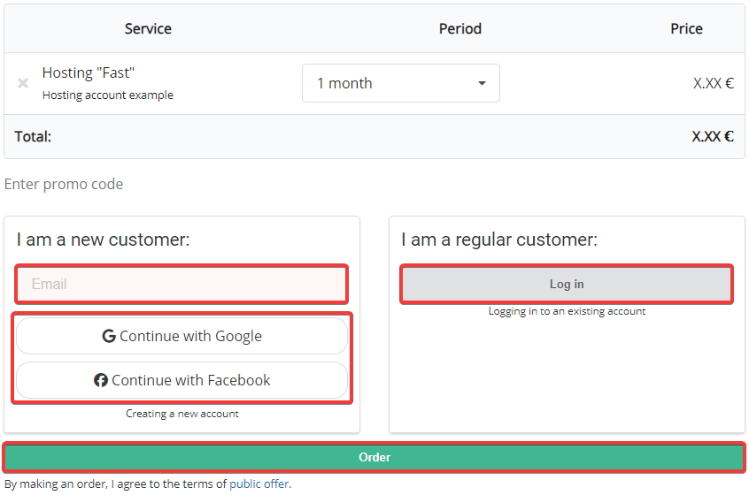 - If you already have an account on our site — in the "I am a regular customer" block, click "Log in" and log in. After placing an order, the service will be automatically linked to this account.
