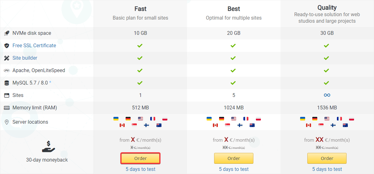 - During the test period it is possible to order some extra services for the test: Memcache(d), Redis, OPcache, Sphinx.