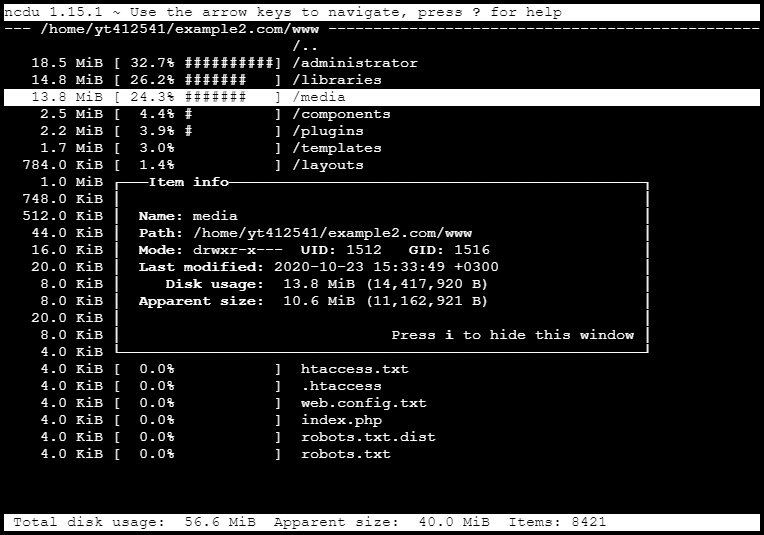 2.11.14. Analyze disk space using ncdu