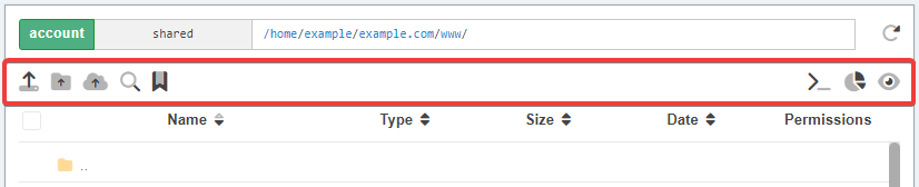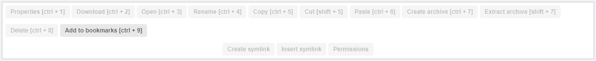 .cache,.cagefs,.cl.selector,.config,.local,.ssh,.system, files.bash*,.viminfo,.gitconfig. - "Bookmarks" — opens the list of added bookmarks.