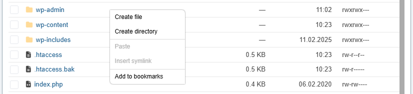 - "Upload files" — allows you to upload selected files from your PC to the current directory. If you need to upload not single files, but the whole directory, use either the directory upload button, or archive — archive on PC (preferably in zip format), upload the archive to the hosting and extract it via the context menu.