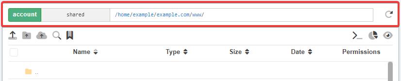- Path — current directory, the contents of which are displayed in the file list. The required path can be specified manually.