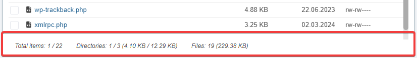 - "Directories" — number of directories in the current directory. If the toolbar has enabled displaying the size of directories, their total size will be displayed in brackets.