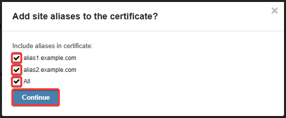 - If the site has aliases to be included in the certificate, the same conditions must be met for them as for installing certificate for domain or subdomain.