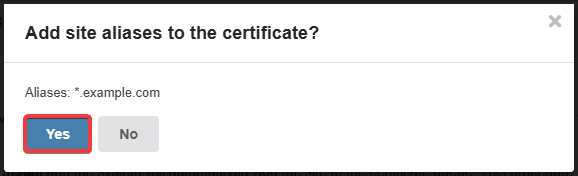 - When submitting an installation request, be sure to agree to include the *.example.com alias in the certificate (instead of example.com, it will be your domain).