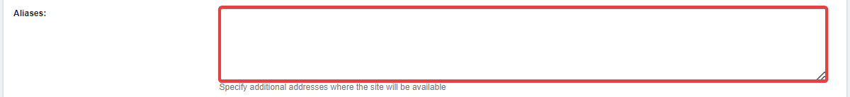 - In the "Aliases" field, specify the address of the alias (multiple aliases can be specified comma separated or on a new line) and save your changes: