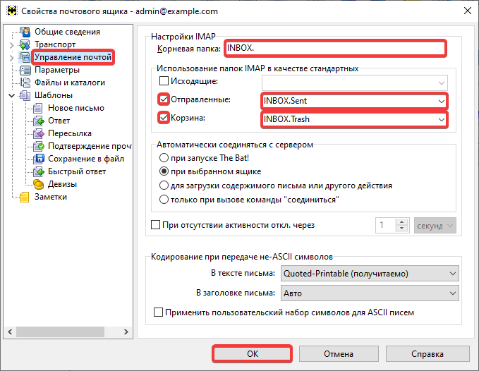 - Fill in the fields in the section «Mail management» and press «OK»: