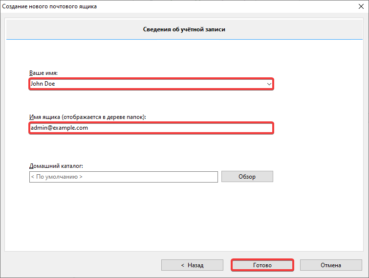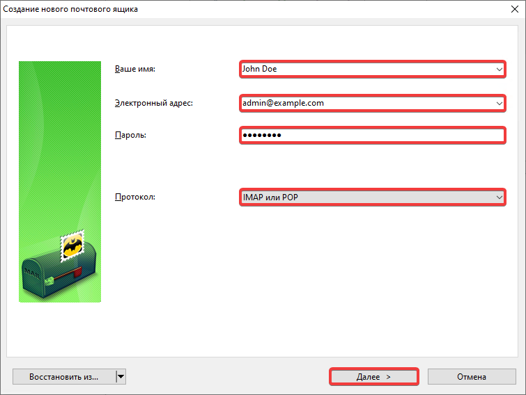 - «Password» — mailbox password.