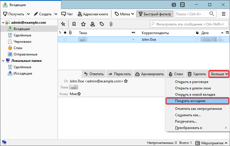 4.3.3.5. View email headers in Thunderbird