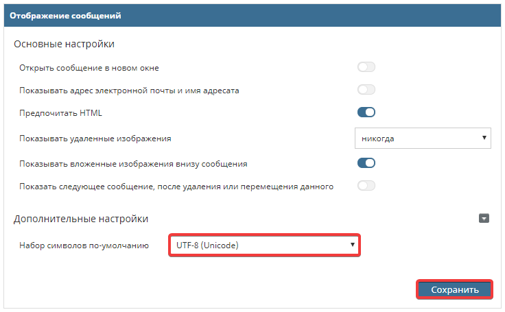 4.3.2.6 Changing the encoding of e-mail display in WebMail classic