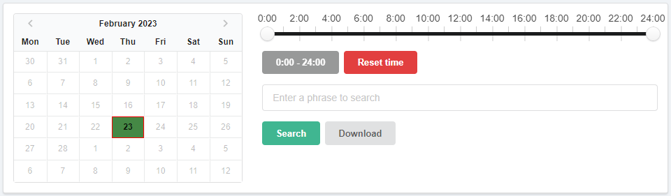 Time filter. Allows you to view the log not for the whole day, but for a selected time period.
