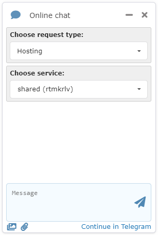 If you have a linked Telegram account, the "Continue in Telegram" button will be available. You can use it to continue the chat you started on the site in the Telegram messenger.