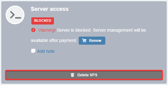 - In the "VPS" section, in the "Server access" block, click "Delete VPS":